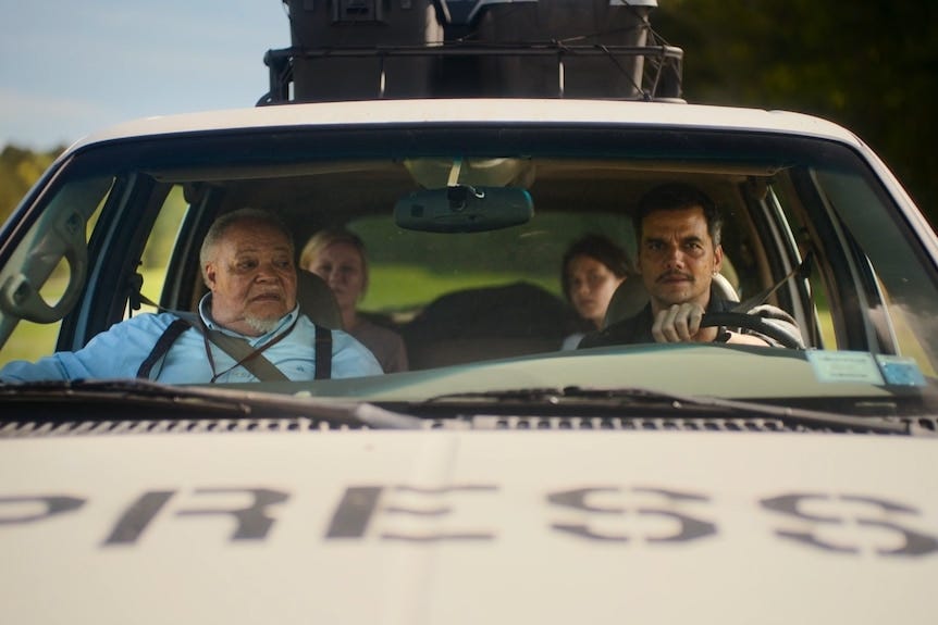 An unlikely family of four thus sets off for Washington, forced, however, to double the length of their journey owing to the precariousness of the landscape. This focused journeying literally removes us from the political, thrusting us instead into the outback of a fractured country. The film’s pace, as we follow them on their 857-mile roundabout journey, is steady and gradual, eschewing (for the most part) the cliches of modern political dramas and dystopian thrillers.