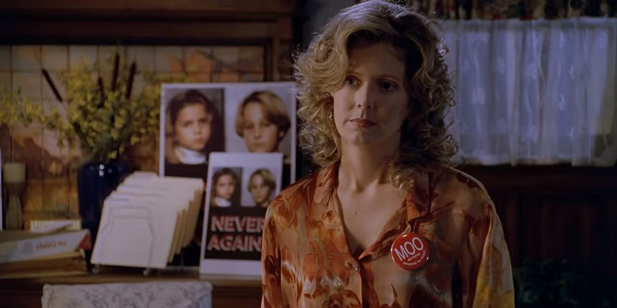 The episode begins when Joyce, accompanying Buffy on one of her patrols (having accepted her daughter’s status as a slayer and harbouring a tentative curiosity to learn more), discovers the bodies of a young boy and girl in a local park. Disturbed, Joyce rallies together Sunnydale’s parents and forms a movement aimed at taking the town back under control from the occult-obsessed youth of Sunnydale High, whom they ultimately consider responsible for the children’s deaths despite any best interests.