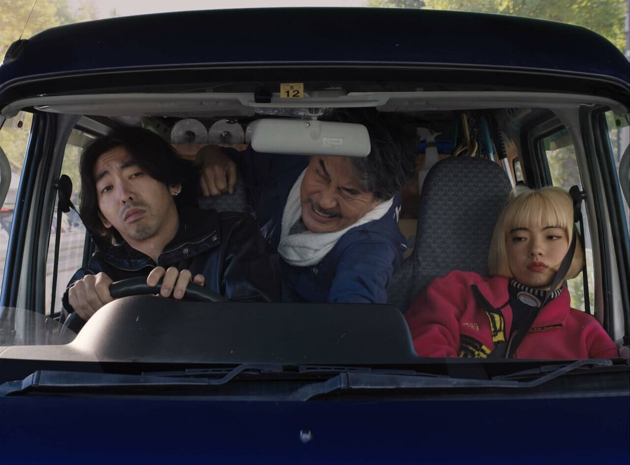 One day, Hirayama and Takashi are busy cleaning a trio of glass toilets situated in Yoyogi Fukamachi Mini Park (whose coloured glass walls turn opaque when in use) when Takashi’s trendy and aloof love interest Aya (Aoi Yamada) turns up suddenly. Keen to impress her, Takashi begs Hirayama to finish work early so he can drive Aya to work (a girls bar) in his van. Acquiescing, Hirayama sits in the back of his van as Takashi drives and fills the silence with mostly nonsensical chatter. This mostly washes over the cool, uninterested Aya who, clocking Hirayama’s music collection, asks Hirayama if she can play his Patti Smith tape.