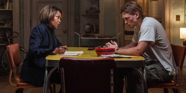 There to do Hank justice is the wonderfully versatile Butler. Disappearing into Hank, Butler inhabits the conflicted character of a disgraced would-have-been with a seamless energy, resisting the cookie-cutter form of the “troubled buff” whose emotional range spans from sexily smouldering to violently vengeful (the type Butler was restricted to in 2024’s lacklustre Bikeriders). Diving deep to channel the bruised heart lying beneath the tough shell of Hank’s muscled exterior, Butler is no stranger to the vulnerabilities of Hank — the guy who calls his mother everyday without fail and feels compelled to ring the police in the face of trouble.